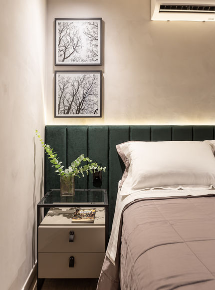 O #ApêQuerAlugar foi super transformado pensando em funcionar para AirBNB. Em um espaço de 48m² temos área social toda integrada, que era super diferente antes da gente chegar. Um quarto multiuso que funciona como dormitório e home office. Um banheiro super charmoso e um quarto mega confortável e cheio de estilo. Por aqui usamos muito verde, amadeirado e preto. Um apartamento marcante.